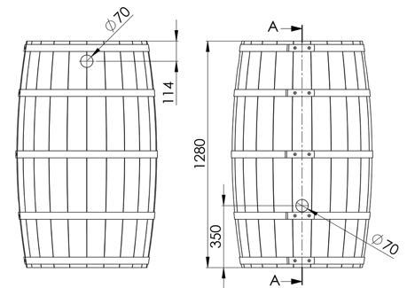 Due diligence in reproducing every detail makes BioBarrel500 difficult to distinguish from a wooden oak barrel. The original fittings around the barrel are also important in the appearance of the entire tank.