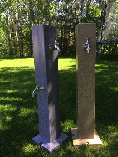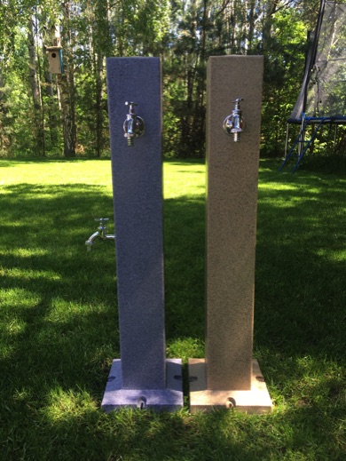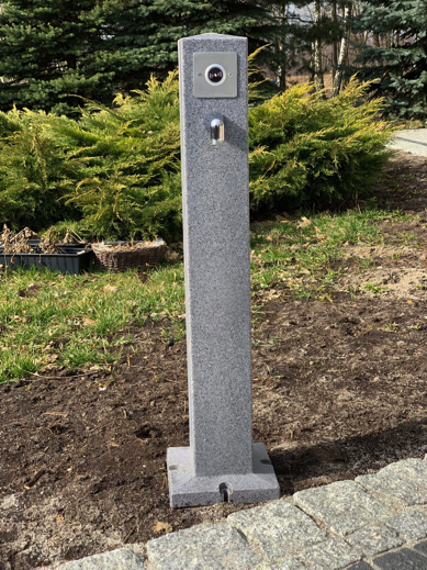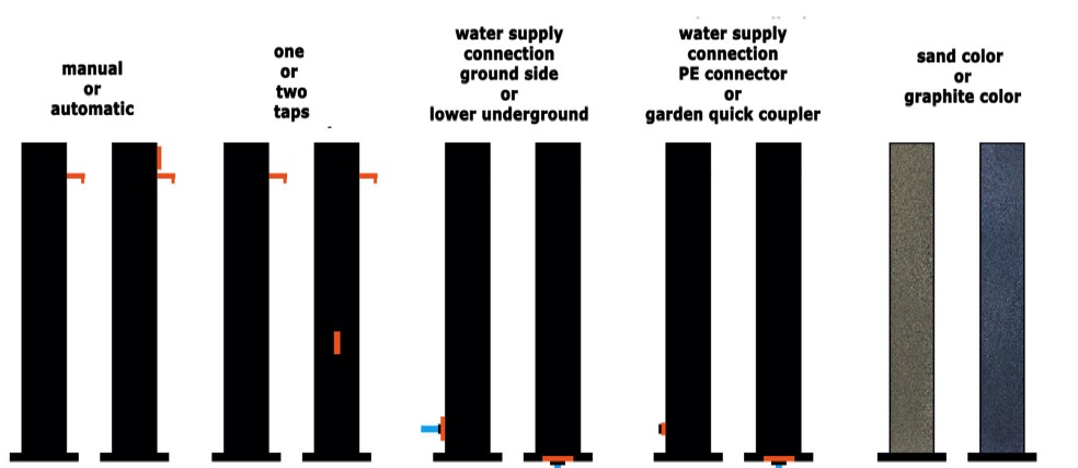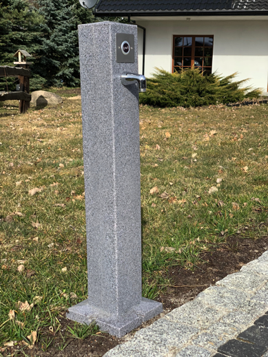 In the basic version, it can be equipped with one or two inlet taps. In the premium version it can be equipped with a proximity sensor that automaically opens the valve and thus the water outflow. The use of two water taps at one point of water intake allows You to wash Yours hands at the same time or fill any vessel with water while a garden hose can be connected to the other tap, e.g. to water the lawn.